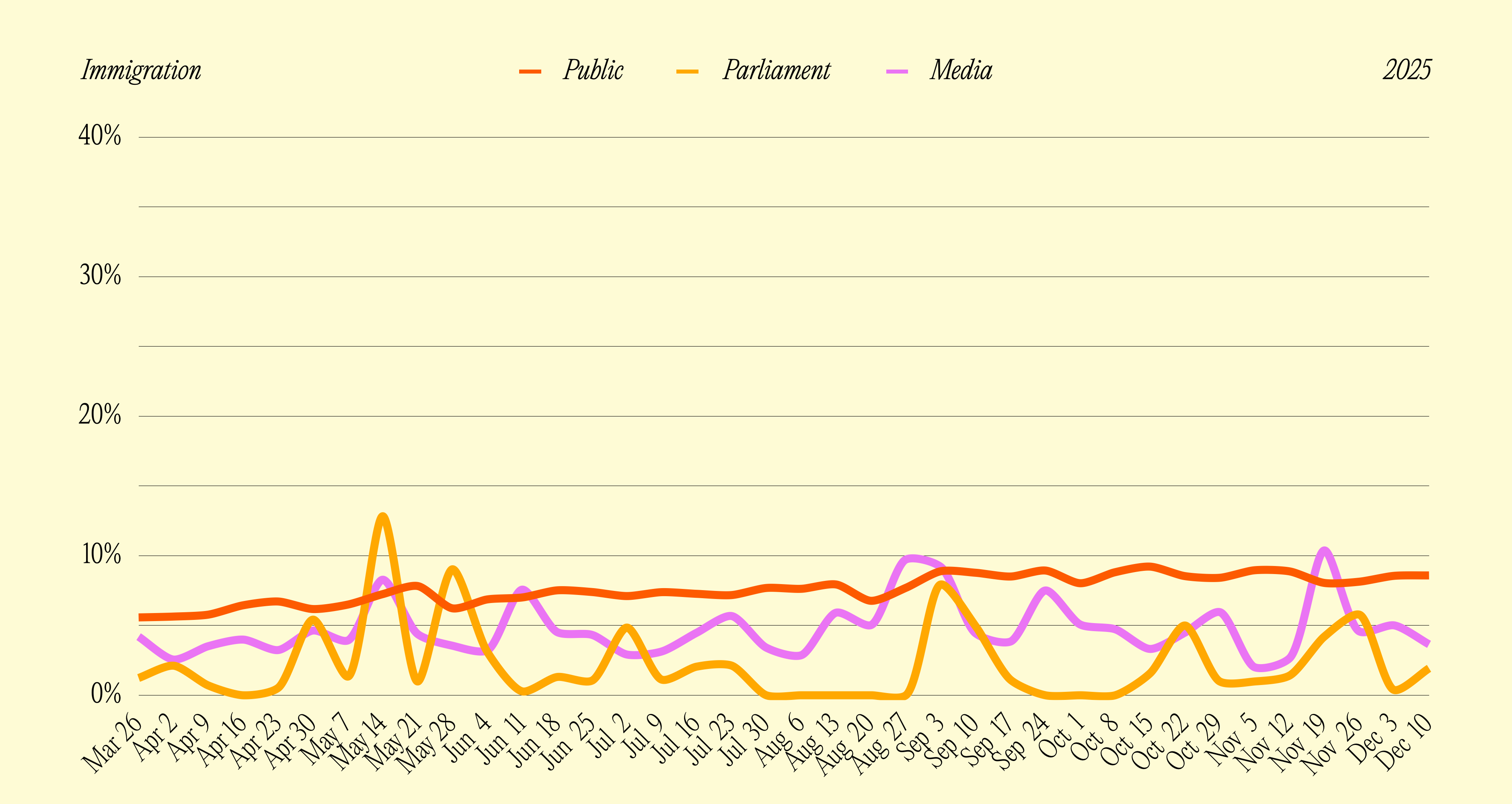 "Immigration shows consistent public concern at 6.2%" - CORRECT. Immigration is at 6.18%.